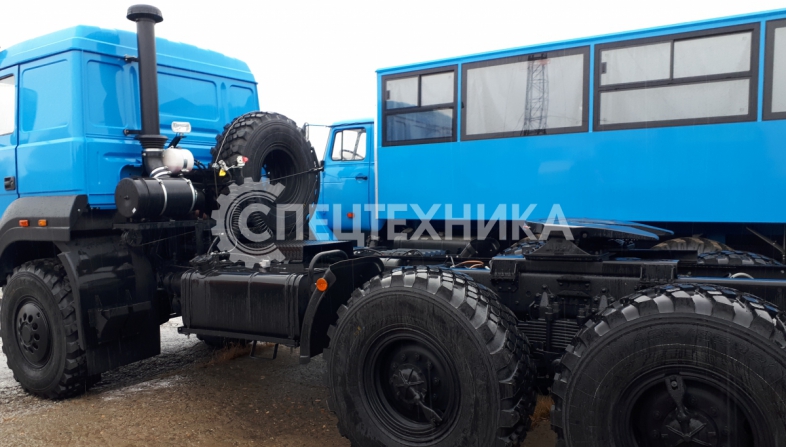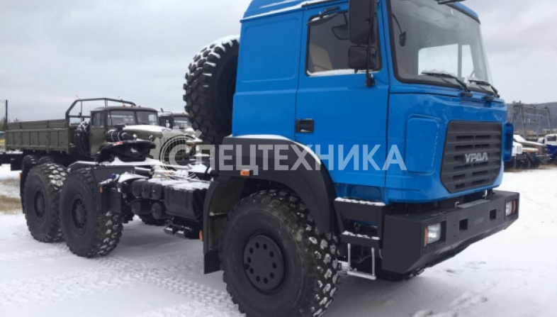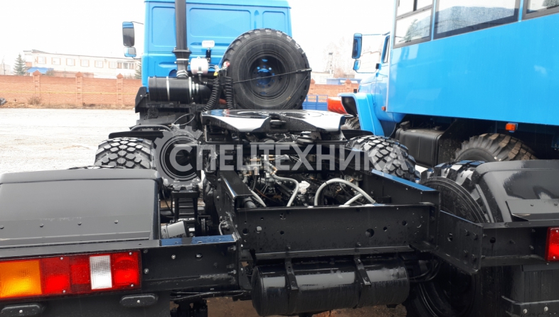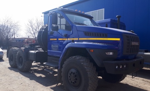 Седельный тягач Урал 44202-82Е5 предназначен для буксирования полуприцепов по всем видам дорог и местности в составе автопоезда полной массой до 38 тонн.
