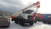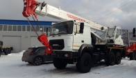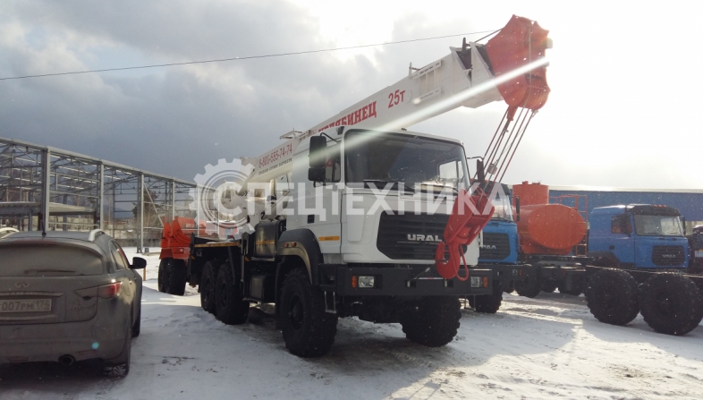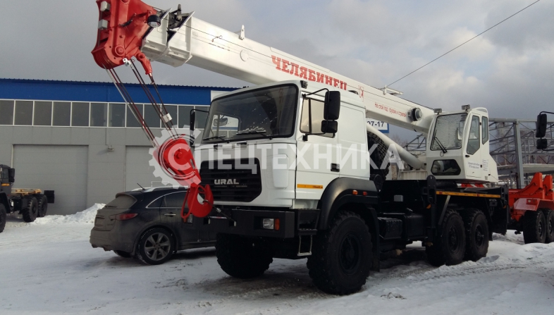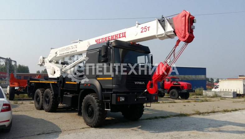 Автокран Челябинец КС-45721 грузоподъемностью 25 тонн предназначен для погрузочно-разгрузочных работ на рассредоточенных объектах