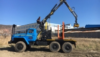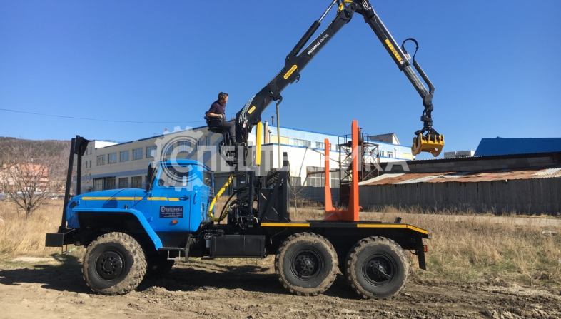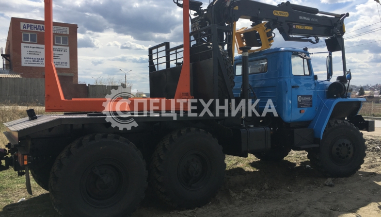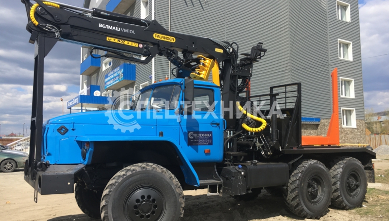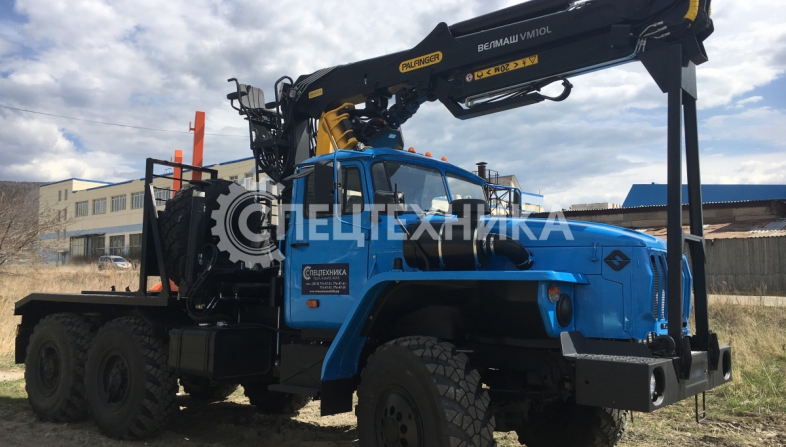 Лесовоз с гидроманипулятором ГМ VM10L74 на усиленном шасси Урал 55571-72Е5 предназначен для транспортировки сортимента от 4 до 23 метров, в составе автопоезда совместно с прицепом-роспуском лесовозным.  Возможна эксплуатация, как в условиях бездорожья, так и по дорогам общего пользования.