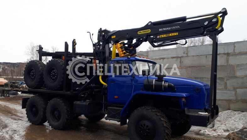 Лесовоз с гидроманипулятором ГМ VM10L74 на усиленном шасси Урал 55571-72Е5 предназначен для транспортировки сортимента от 4 до 23 метров, в составе автопоезда совместно с прицепом-роспуском лесовозным. Возможна эксплуатация, как в условиях бездорожья, так и по дорогам общего пользования.
