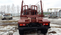 Лесовоз оборудован механизмом самопогрузки прицепа-роспуска.