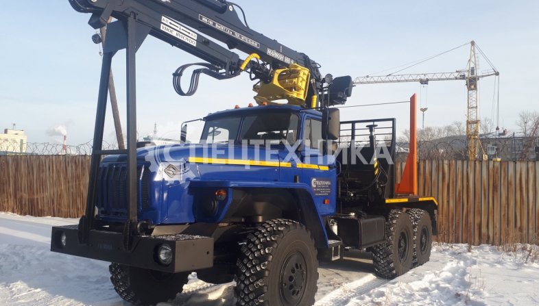 Лесовоз с гидроманипулятором Майман-100S на усиленном шасси Урал 55571-72Е5 предназначен для транспортировки сортимента от 4 до 23 метров, в составе автопоезда совместно с прицепом-роспуском лесовозным. Возможна эксплуатация, как в условиях бездорожья, так и по дорогам общего пользования.