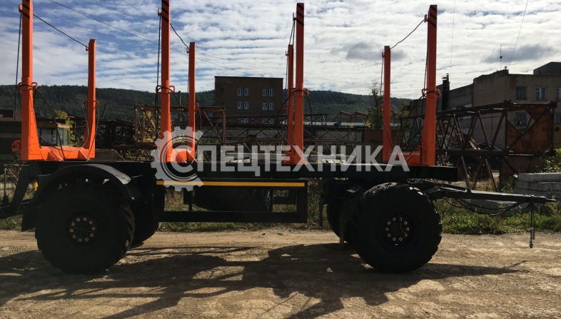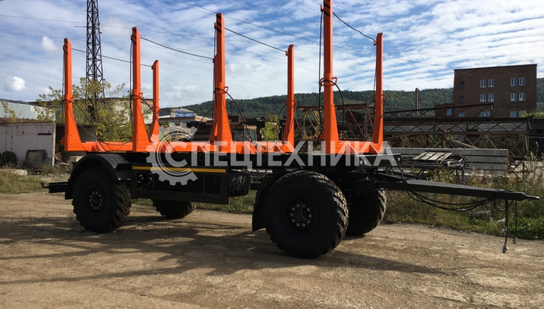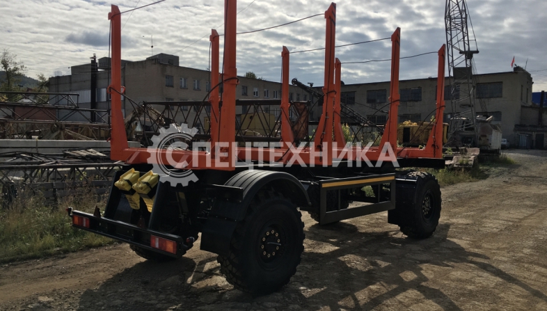 Сортиментовозный прицеп односкатный предназначен для перевозки леса в сортиментах длиной от 2 до 6 метров по всем видам дорог и местности. Прицеп может эксплуатироваться в составе автопоезда с автомобилем-тягачом, имеющим тягово-сцепное устройство, пневмо- и электровыводы.