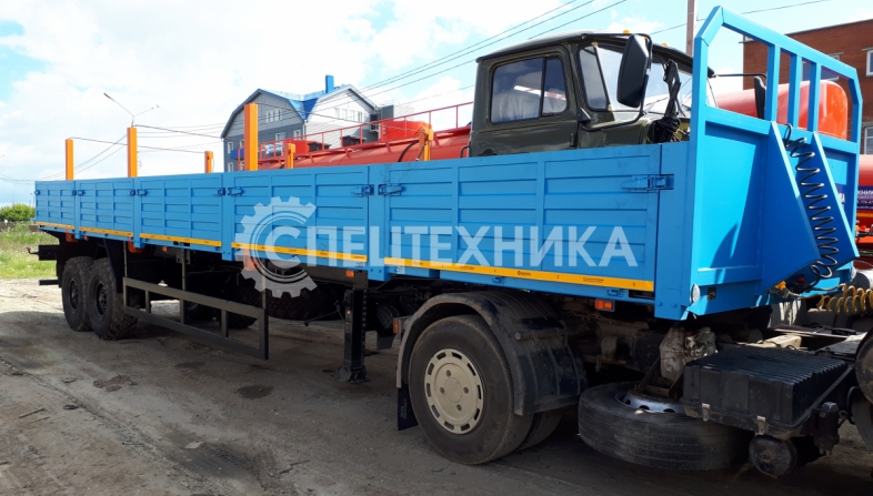- Борта и стойки с возможностью демонтажа, размер бортов позволяет грузить их поперек кузова и увязывать в передней части полуприцепа;