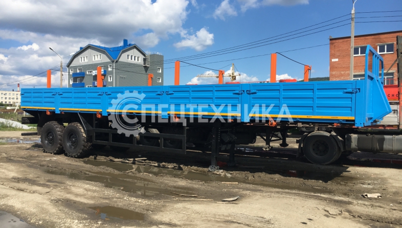 Бортовой полуприцеп ППБ 20Б предназначен для перевозки различных грузов весом до 20 тонн по дорогам общего пользования.