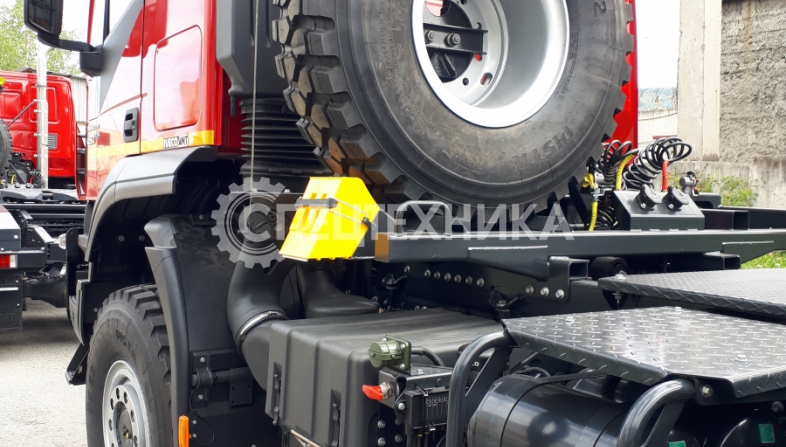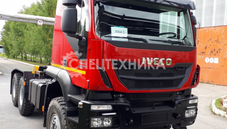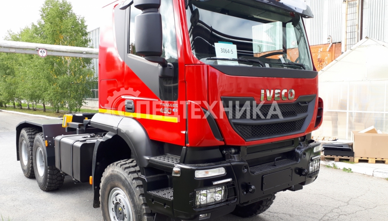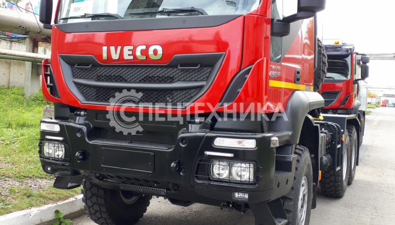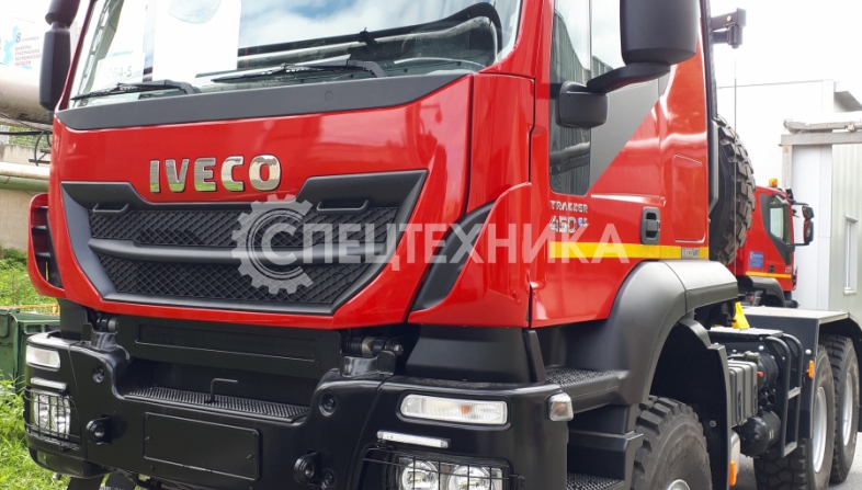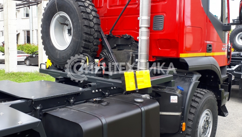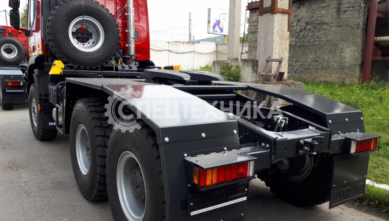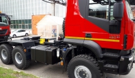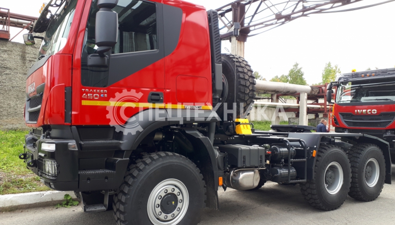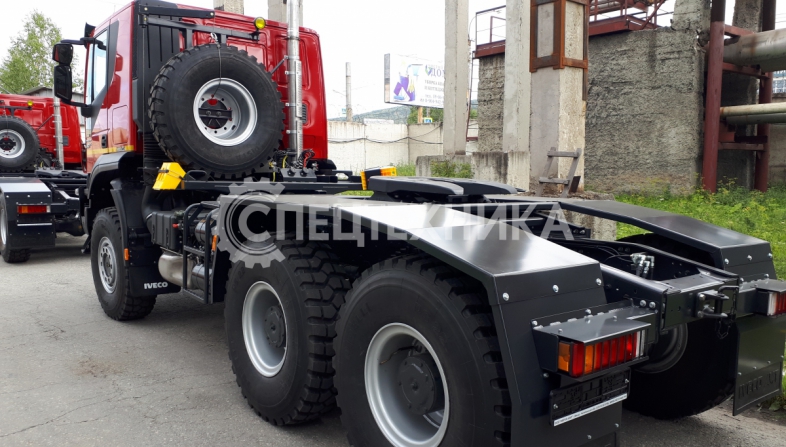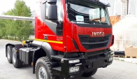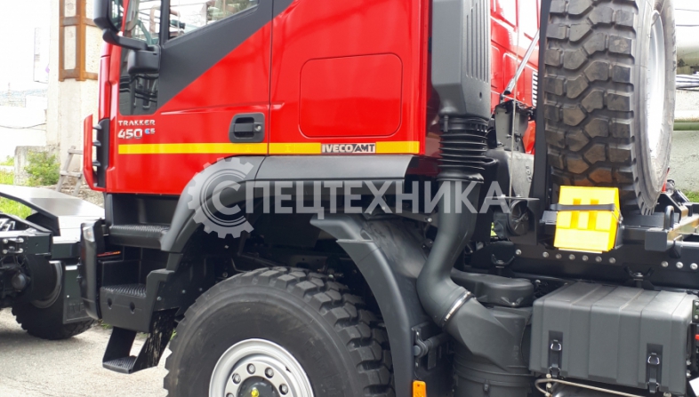 Седельный тягач IVECO-AMT 450 предназначен для буксирования полуприцепов по всем видам дорог. Водительское сиденье на пневмоподвеске с регулировками по высоте, углу наклона подушки и спинки, продольному перемещению