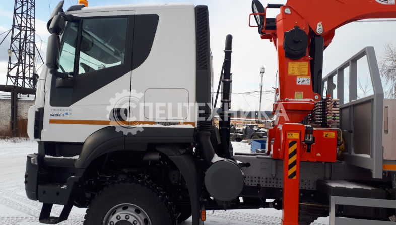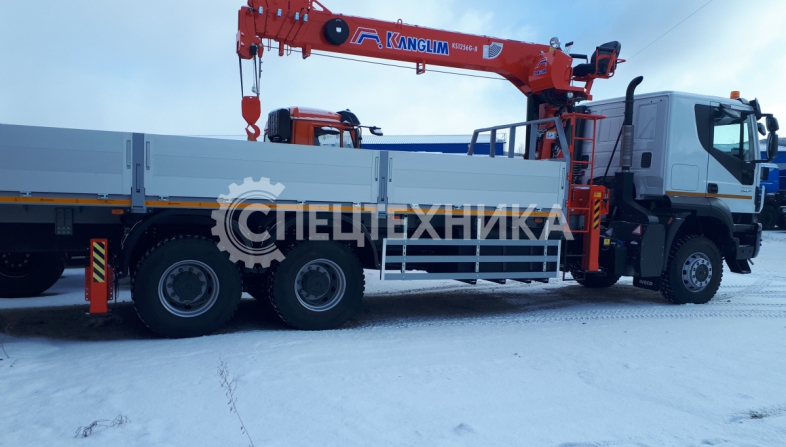 Бортовой автомобиль IVECO-AMT 633943 с КМУ Kanglim KS 1256G-II предназначен для ремонтно-восстановительных, монтажных и погрузочно-разгрузочных работ, для перевозки грузов.