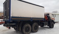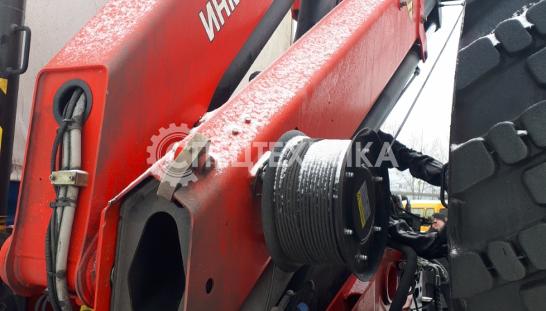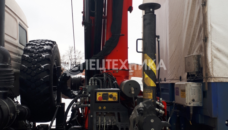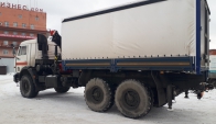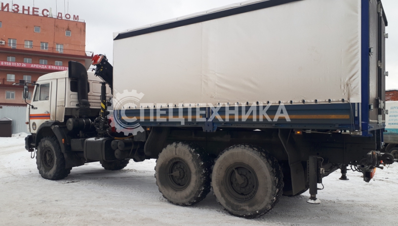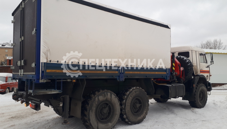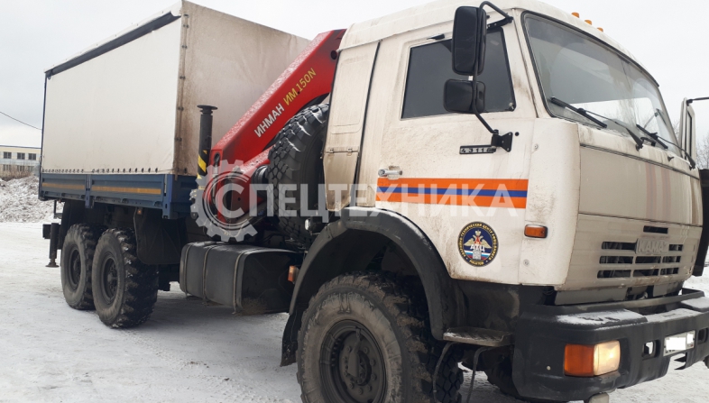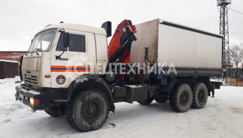 КамАЗ 43118 бортовая платформа оснащенная сдвижными боковыми шторами, распашные двери, КМУ ИМ-150N оборудован диэлектрической платформой (люлькой) с дистанционным управлением дирижер.