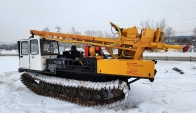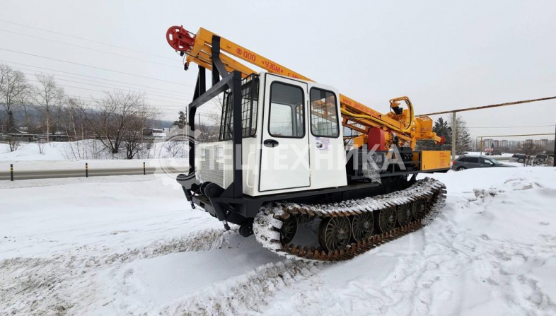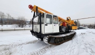 Трактор специального назначения ТСН-4 оснащён одноместной кабиной, бульдозерным отвалом и навесным буровым оборудованием УРБ-2Д3.
