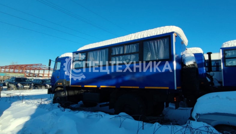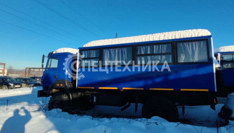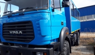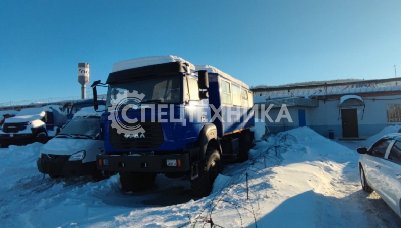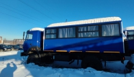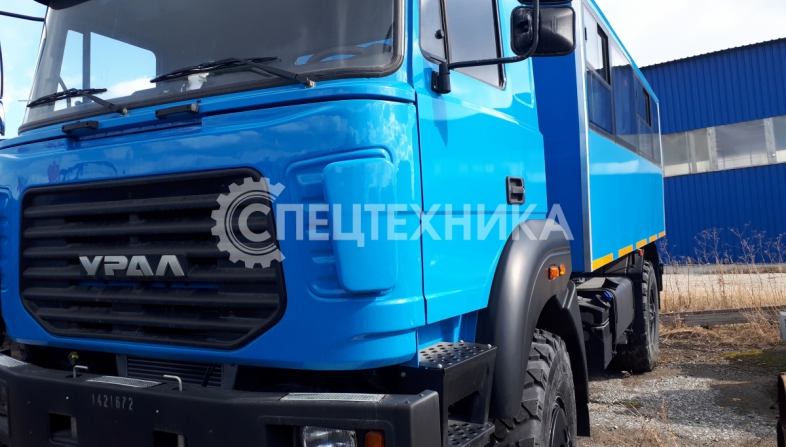 Вахтовый автобус Урал 32552-3013-79Е5 с колесной формулой 4х4 с двигателем экологического класса ЕВРО-5 оборудован кузовом-фургоном с низким полом и предназначен для оперативной доставки рабочих (ремонтных, строительных, геолого-разведывательных и т.п.) бригад в количестве 20 человек на объект (+ 1 пассажирское место в кабине водителя).