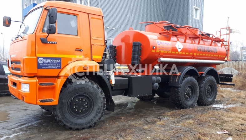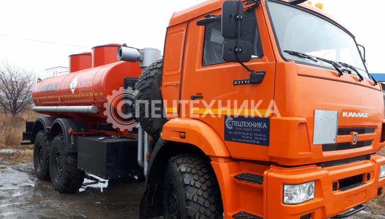 Автотопливозаправщик АТЗ-10 на шасси КАМАЗ 43118-50 предназначен для транспортирования, кратковременного хранения и заправки светлыми нефтепродуктами автомобилей, различных механизмов и машин. Раздача нефтепродуктов осуществляется при помощи насоса СВН-80.